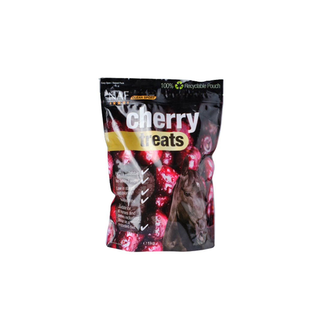 Priboljški NAF Cherry Treats so naravni in vsebuje le sestavine najboljše kvalitete. ki združujejo slasten okus češnje z naravnim šipkom in rdečo peso ter ustvarjajo okusno sadno poslastico, ki jo bo vaš konj oboževal.